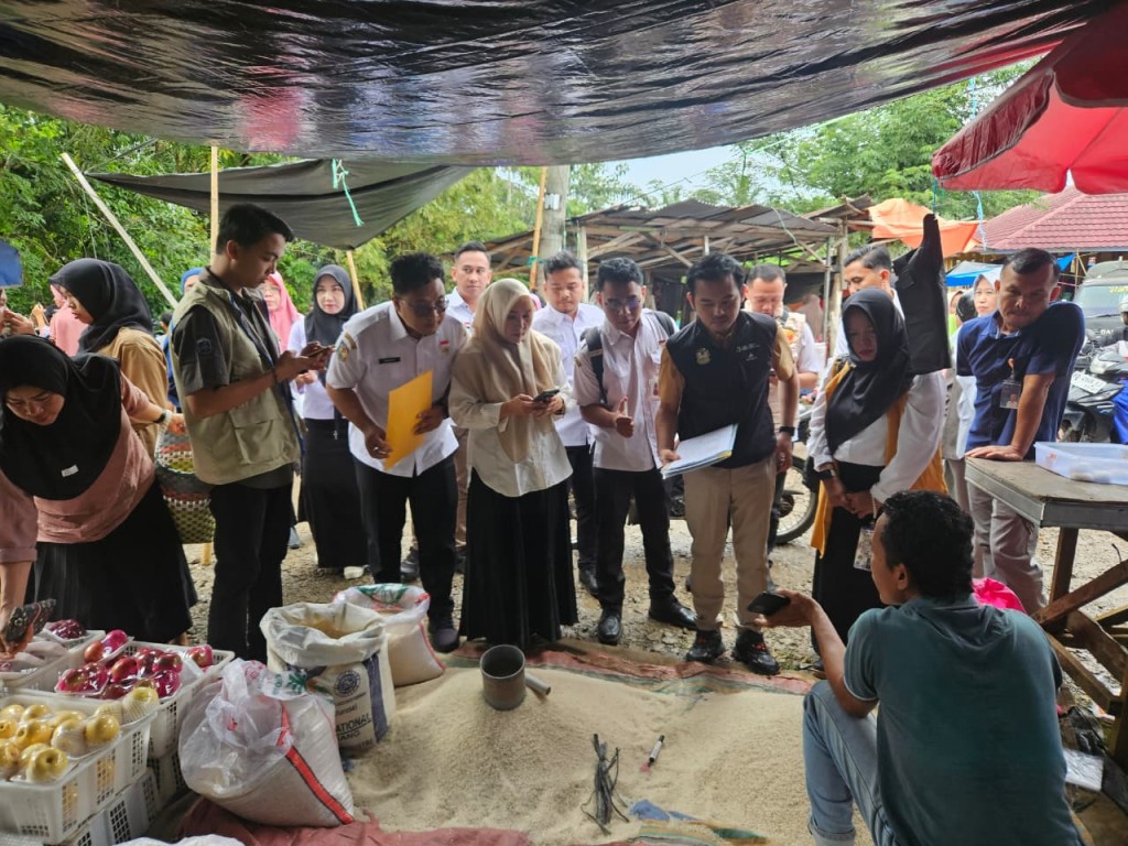 Bengkulu Tengah, 22 Oktober 2025 — Dinas Ketahanan Pangan dan Perikanan (DKPP) Kabupaten Bengkulu Tengah bersama Badan Pangan Nasional (Bapanas), Tim Satgas Pangan Polda Bengkulu, Perum Bulog Divre Bengkulu, Dinas Perindustrian dan Perdagangan Provinsi Bengkulu, serta Dinas Perindustrian dan Perdagangan Kabupaten Bengkulu Tengah melaksanakan kegiatan pemeriksaan harga dan ketersediaan beras di Pasar Karang Tinggi, Rabu (22/10).