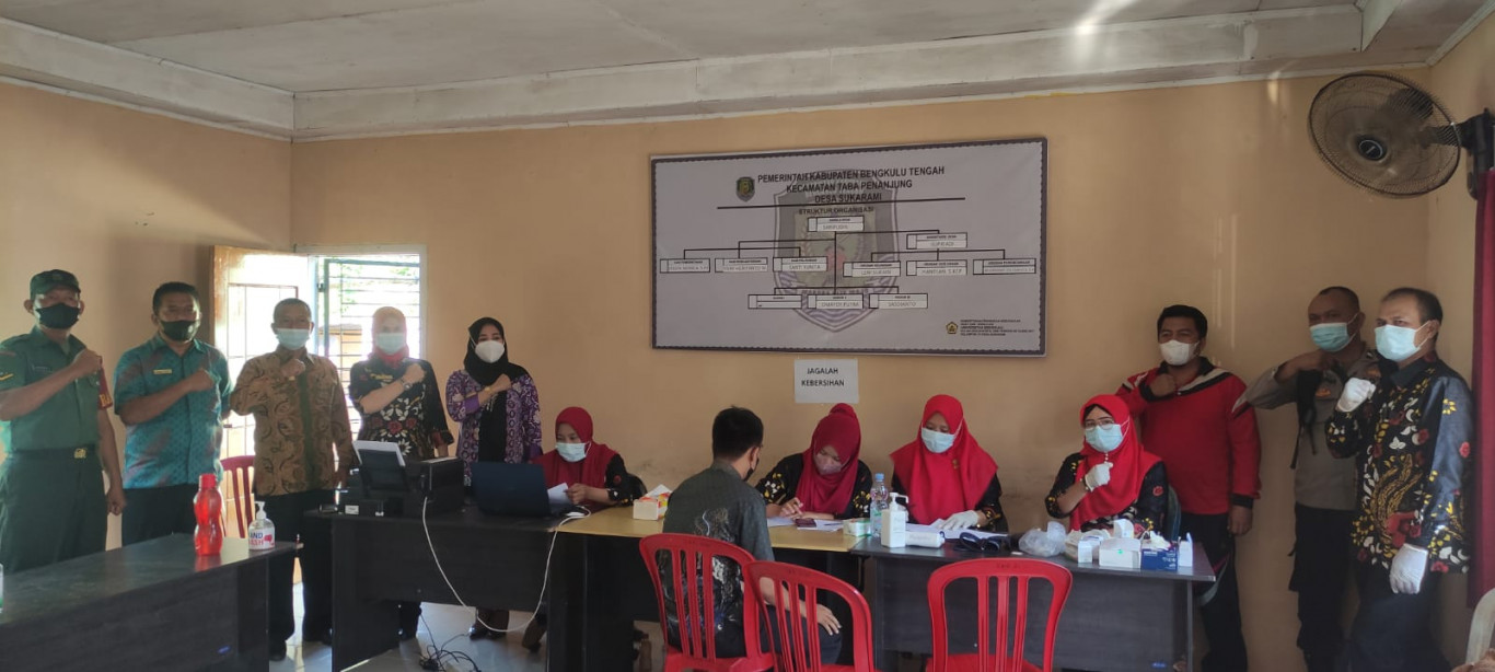 Dkpp - Dinas Ketahanan dan Perikanan Kabupaten Bengkulu Tengah melaksanakan kegiatan Percepatan Vaksin Lanjutan (booster) bagi masyarakat di Kantor Desa Sukarami Kabupaten Bengkulu Tengah (21/07).